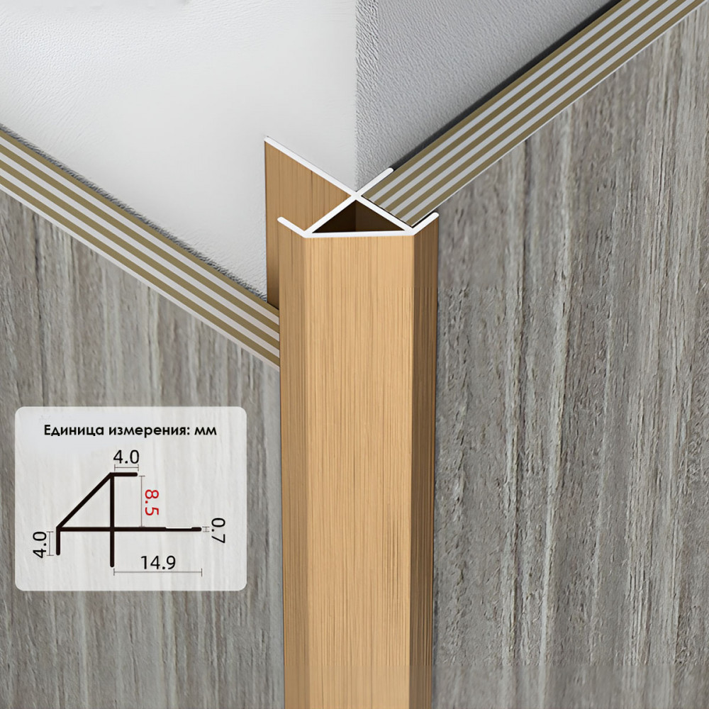 Основные характеристики Профиль угловой внешний алюминиевый для панелей 8 мм латунь 7597-88