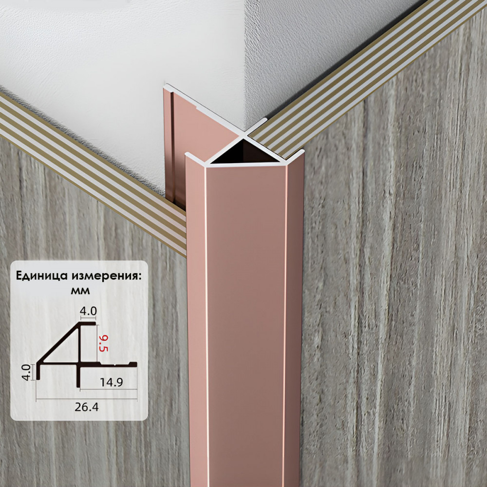 Описание Профиль угловой внешний алюминиевый для панелей 9 мм розовое золото 7604-88