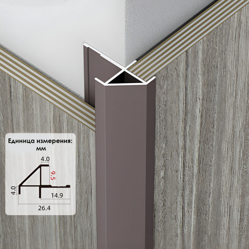 Основные характеристики Профиль угловой внешний алюминиевый для панелей 9 мм кофейный 7607-88