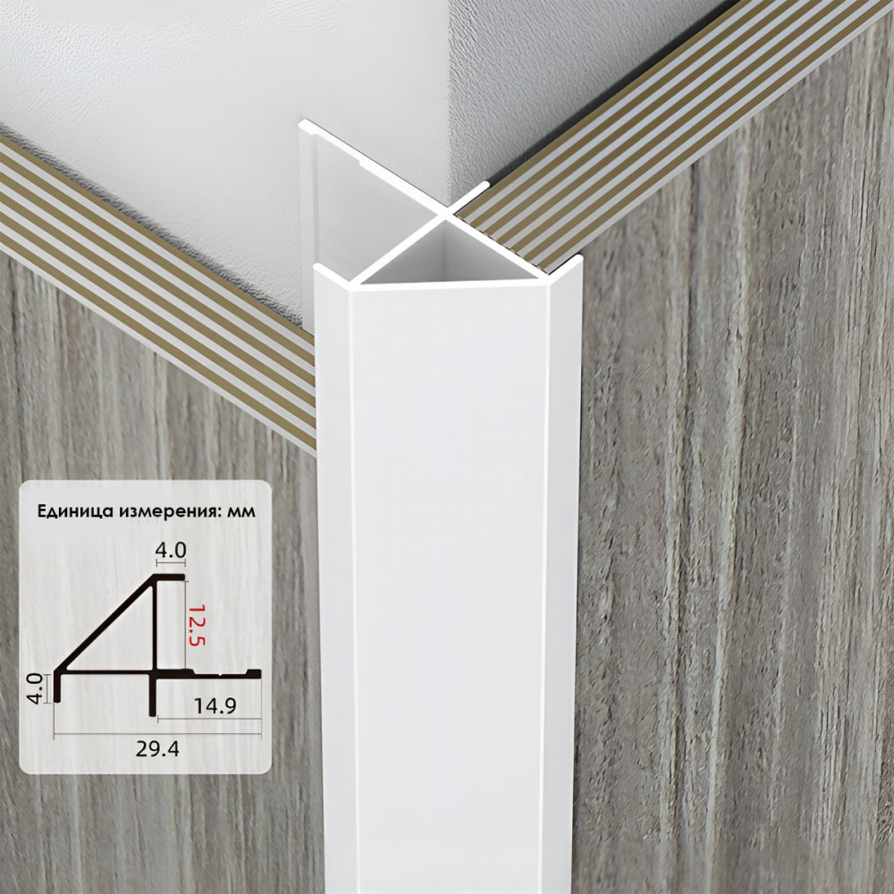Основные характеристики Профиль угловой внешний алюминиевый для панелей 12 мм белый 7608-88