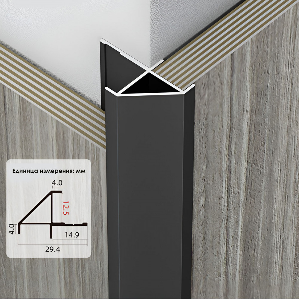 Основные характеристики Профиль угловой внешний алюминиевый для панелей 12 мм черный 7610-88