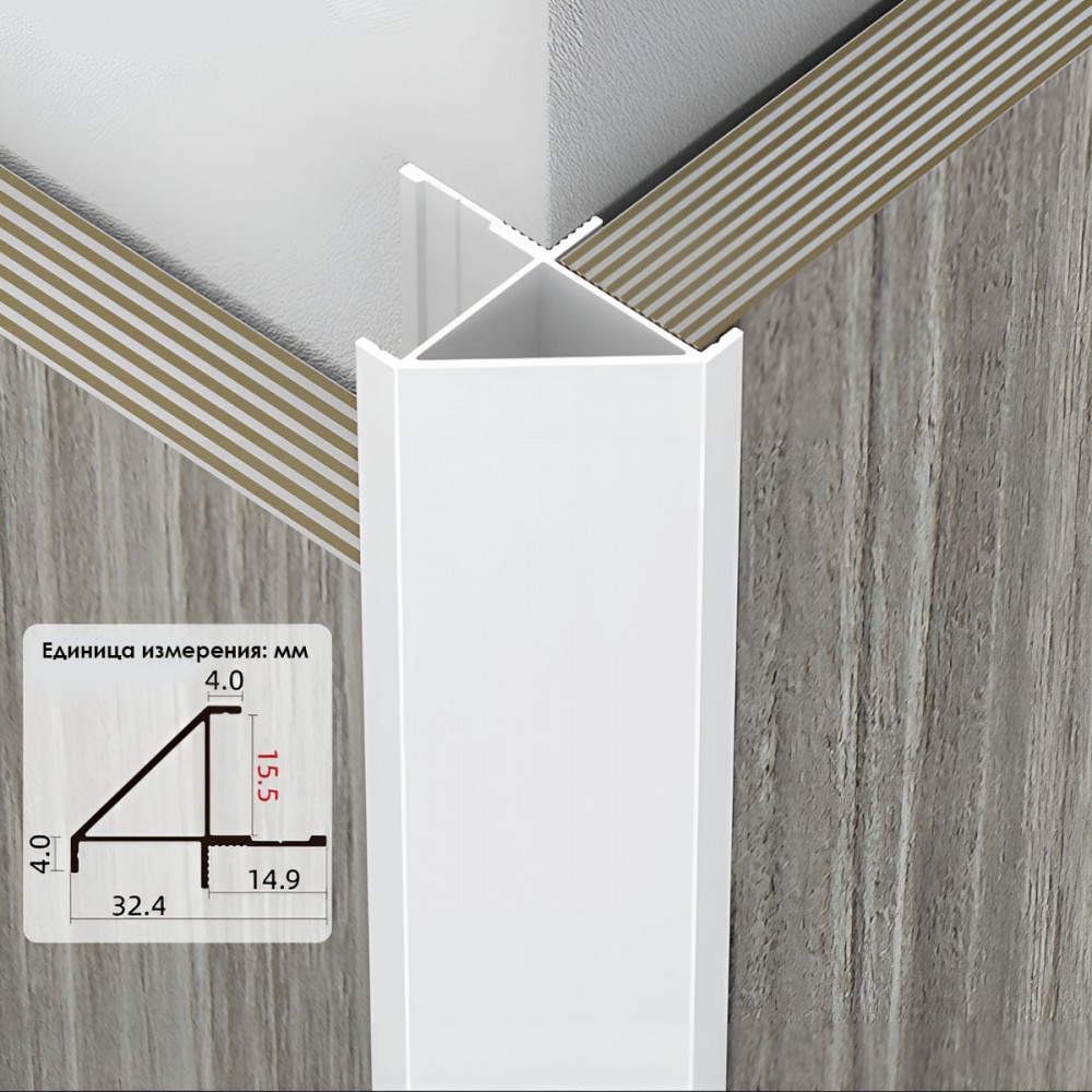Описание Профиль угловой внешний алюминиевый для панелей 15 мм белый 7619-88