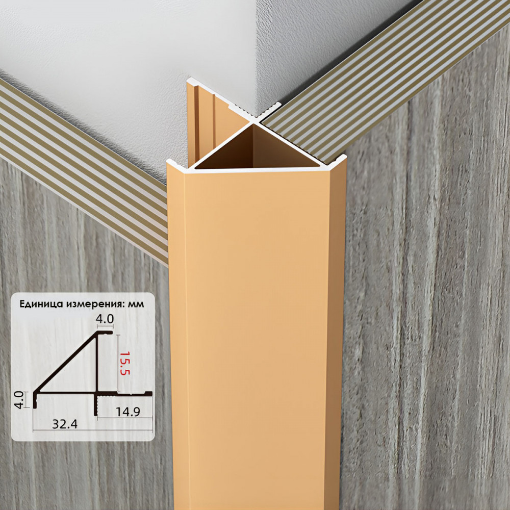 Основные характеристики Профиль угловой внешний алюминиевый для панелей 15 мм матовый золотой 7620-88