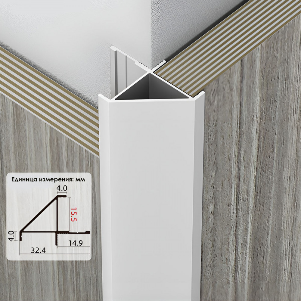 Описание Профиль угловой внешний алюминиевый для панелей 15 мм матовый серебристый 7621-88