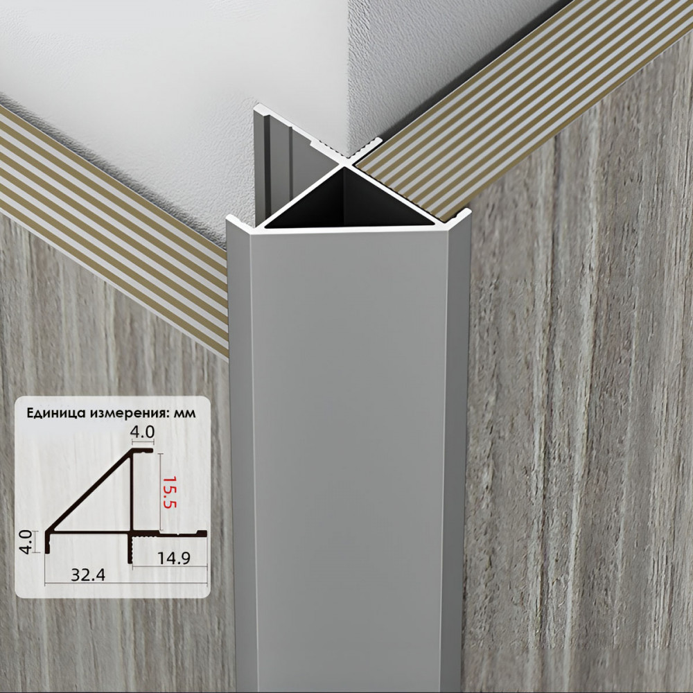 Описание Профиль угловой внешний алюминиевый для панелей 15 мм серый 7622-88