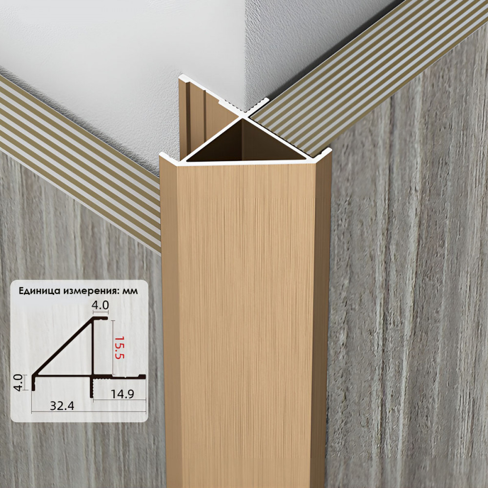 Основные характеристики Профиль угловой внешний алюминиевый для панелей 15 мм латунь 7625-88