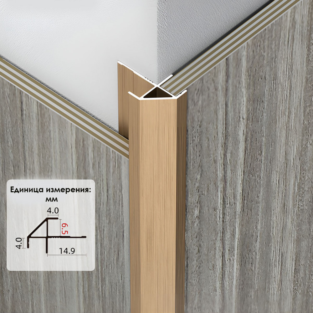 Основные характеристики Профиль угловой внешний алюминиевый для панелей 6 мм латунь 7588-88