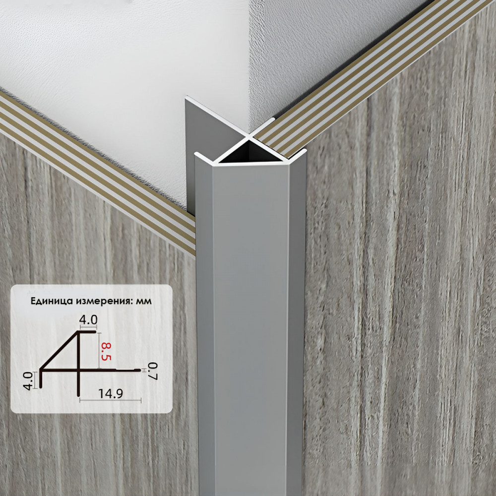 Описание Профиль угловой внешний алюминиевый для панелей 8 мм серый 7592-88
