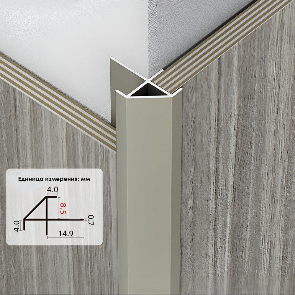 Основные характеристики Профиль угловой внешний алюминиевый для панелей 8 мм шампань 7596-88