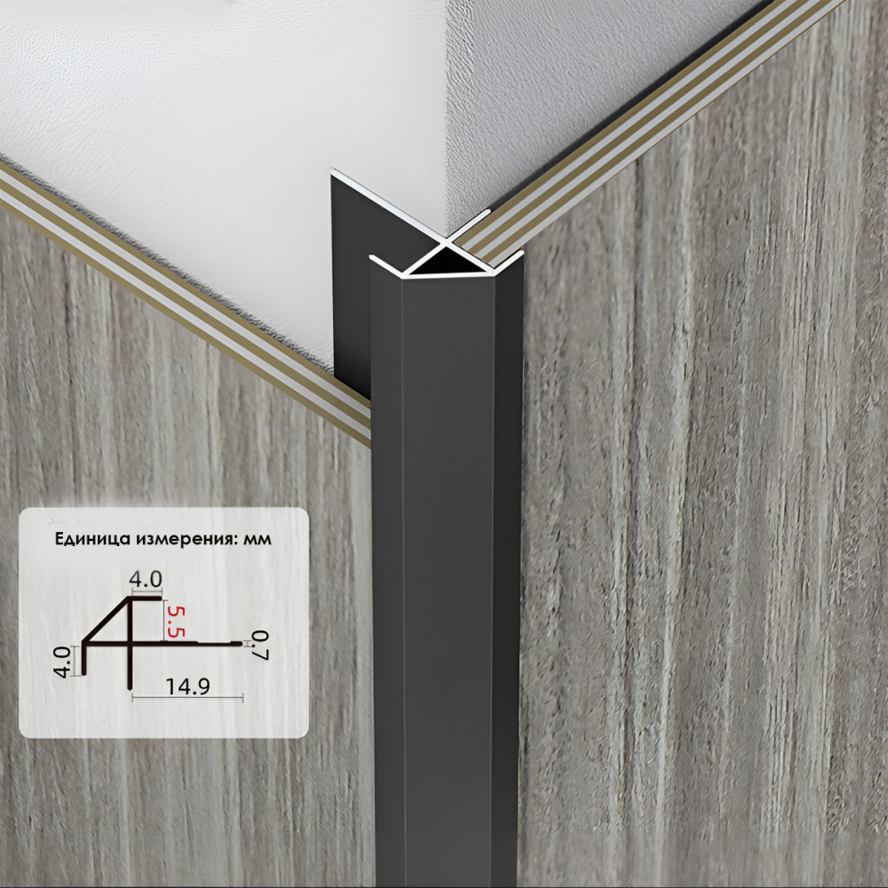 Основные характеристики Профиль угловой внешний алюминиевый для панелей 5 мм черный 6913-88
