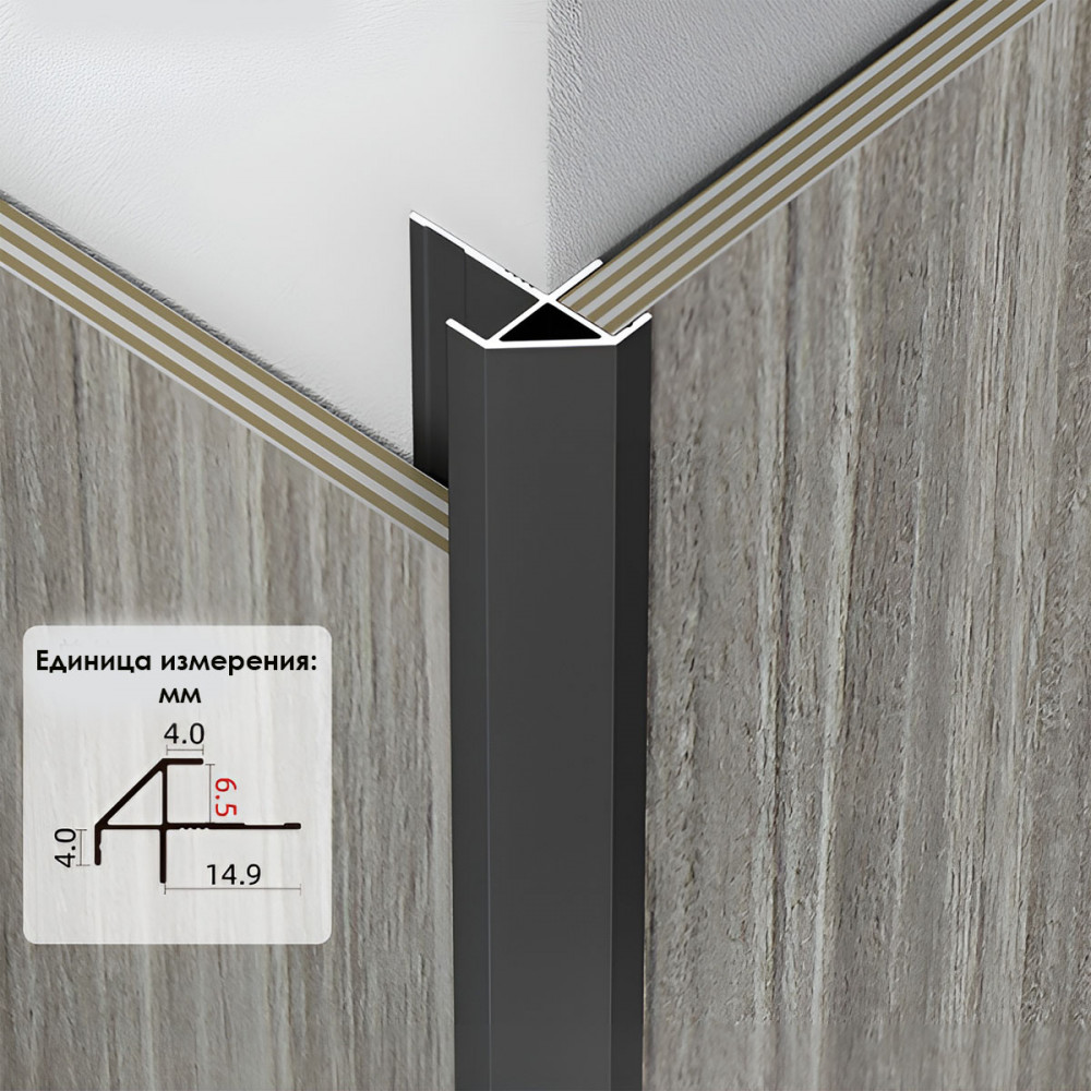 Описание Профиль угловой внешний алюминиевый для панелей 6 мм черный 7581-88
