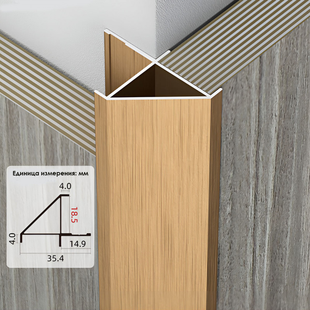 Описание Профиль угловой внешний алюминиевый для панелей 18 мм латунь 13159-88