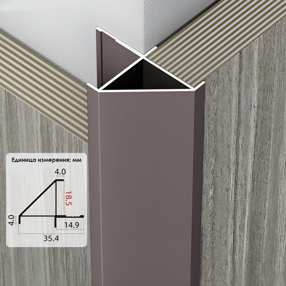 Основные характеристики Профиль угловой внешний алюминиевый для панелей 18 мм кофейный 13160-88